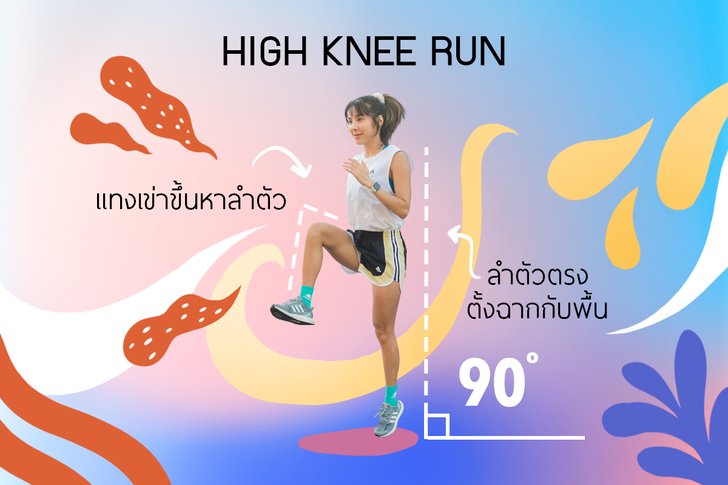 วิธีการทำท่า: วิ่งแทงเข่าขึ้นมาหาตัวสลับข้างกันทั้งซ้ายและขวา พร้อมกับเกร็งหน้าท้องเมื่อดึงเข่าเข้ามาหาตัว