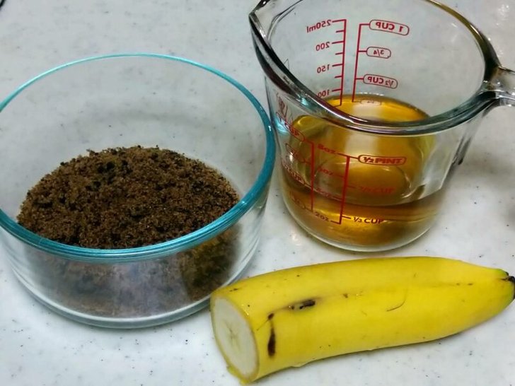 2. ชั่งน้ำตาลทรายแดงและใส่ลงในภาชนะที่ทำจากแก้วทนความร้อนและมีฝาปิด เทน้ำส้มสายชูหมักลงไป คนจนน้ำตาลทรายแดงละลาย แล้วเติมกล้วยลงไป