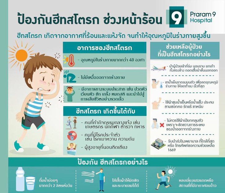 พญ.อัณณาช์ เตรียมอนุรักษ์ อายุรแพทย์โรคหัวใจ โรงพยาบาลพระรามเก้า เล่าว่า ฮีทสโตรก หรือ ลมแดด เกิดจากร่างกายได้รับอุณภูมิความร้อนมากเกินไป ทำให้ผลส่งกระทบต่อสมองได้ เช่น มีภาวะชัก หมดสติได้ เมื่อเกิดการชักหมดสติแล้วหากไม่ได้ให้สารน้ำ หรือไม่ได้ทำอุณหภูมิร่างกายให้ลดลงหรือเย็นลงทันที ก็จะสามารถทำให้คนไข้เสียชีวิตได้